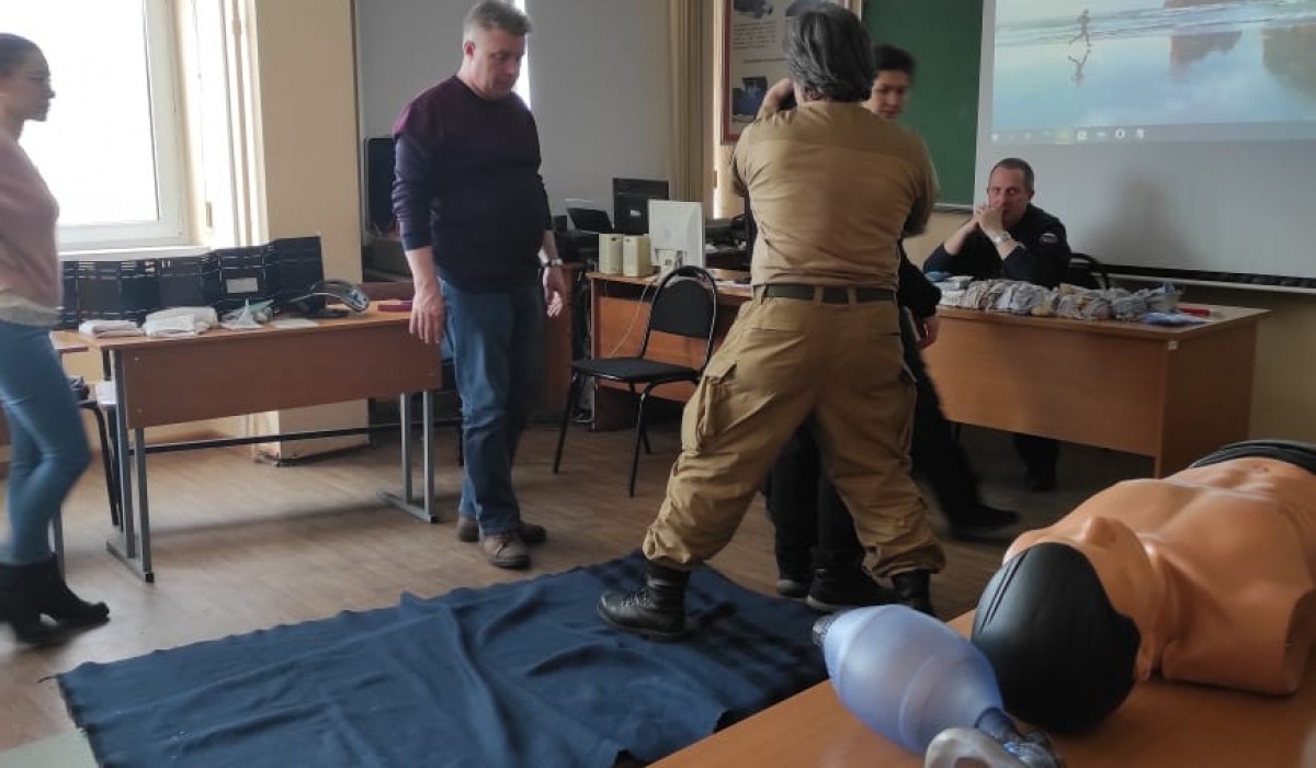 На базе учебного центра МЧС России начались занятия по подготовке студентов РГСУ, РУДН и медиков к проведению занятий в школах города по оказанию первой помощи людям, попавшим в беду. Занятия со слушателями в течение пяти дней будут проводить профессиональные спасатели, представители ООО «Российский Союз Спасателей», под руководством Федоровича Владимира Рюриковича, заместителя руководителя учебного центра организации.