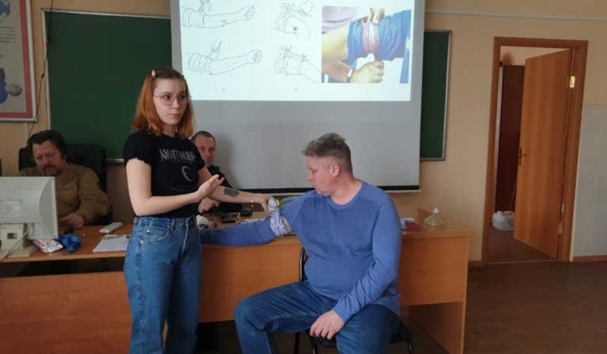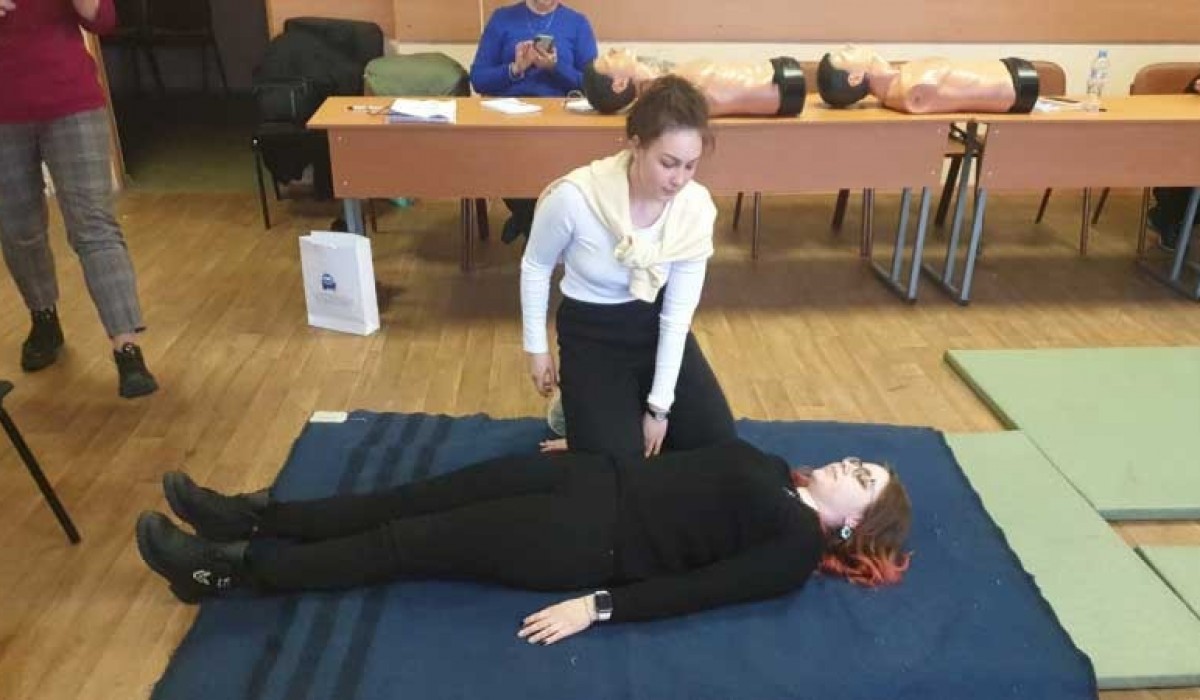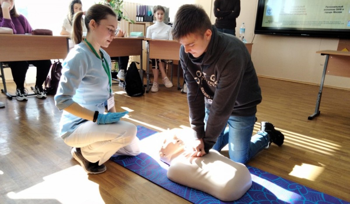 Первое занятие в школе в рамках проекта «Скорая в пути» провела студентка I курса лечебного факультета РГСУ Анастасия Морозова. Она учила детей, как оказывать первую помощь при отсутствии сознания и пульса. «Ученики 8-10 медицинских классов школы получили не только теоретические знания, но и отработали на манекенах все манипуляции, необходимые при оказании помощи.