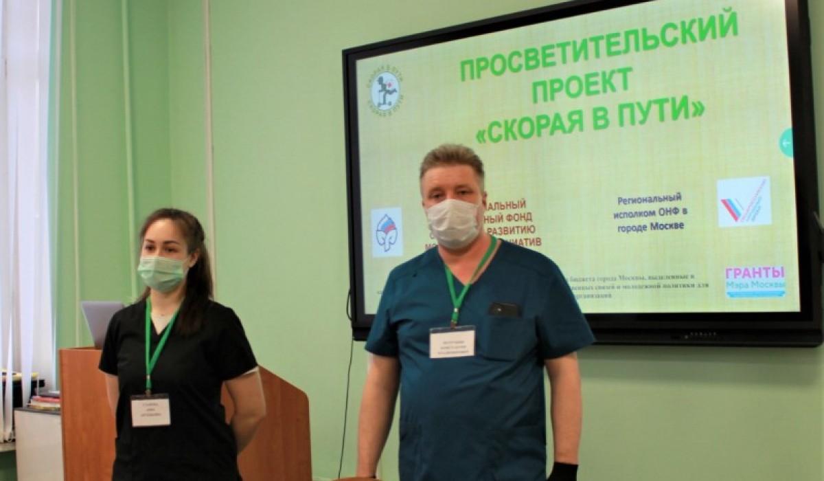 Старшеклассники сами попробовали оказать первую помощь условным пострадавшим. Судя по обратной реакции, лекцией остались довольны и ученики, и преподаватель», отметила Новикова. Социально значимый проект «Скорая в пути» реализует Межрегиональный общественный фонд содействия развитию молодежных инициатив совместно с региональным отделением ОНФ в городе Москве, при поддержке комитета общественных связей и молодежной политики Москвы. Общероссийский народный фронт (ОНФ) – это общественное движение, созданное в мае 2011 года по инициативе президента РФ Владимира Путина, которое объединяет активных и неравнодушных жителей страны.