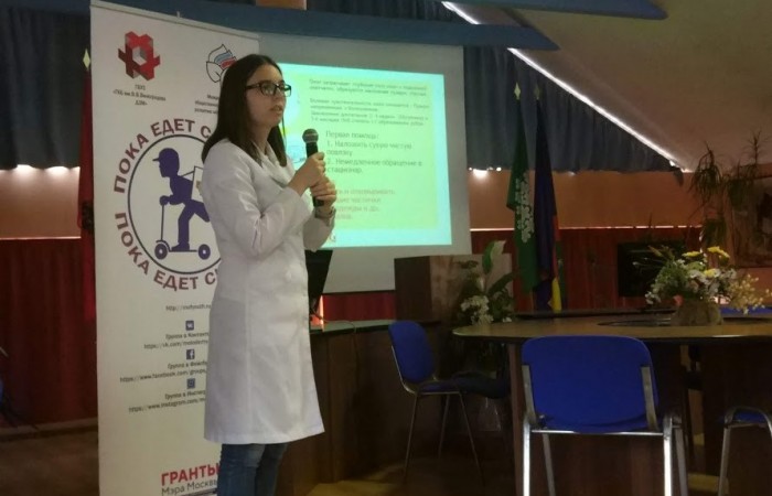 12 марта 2020 года прошло первое занятие в школе № 1205. Команда десятиклассников, среди которых некоторые были ребята, планирующие поступать в медицинские ВУЗы, с живым интересом в доступной интерактивной форме прошла обучение по теме «Бытовые травмы».