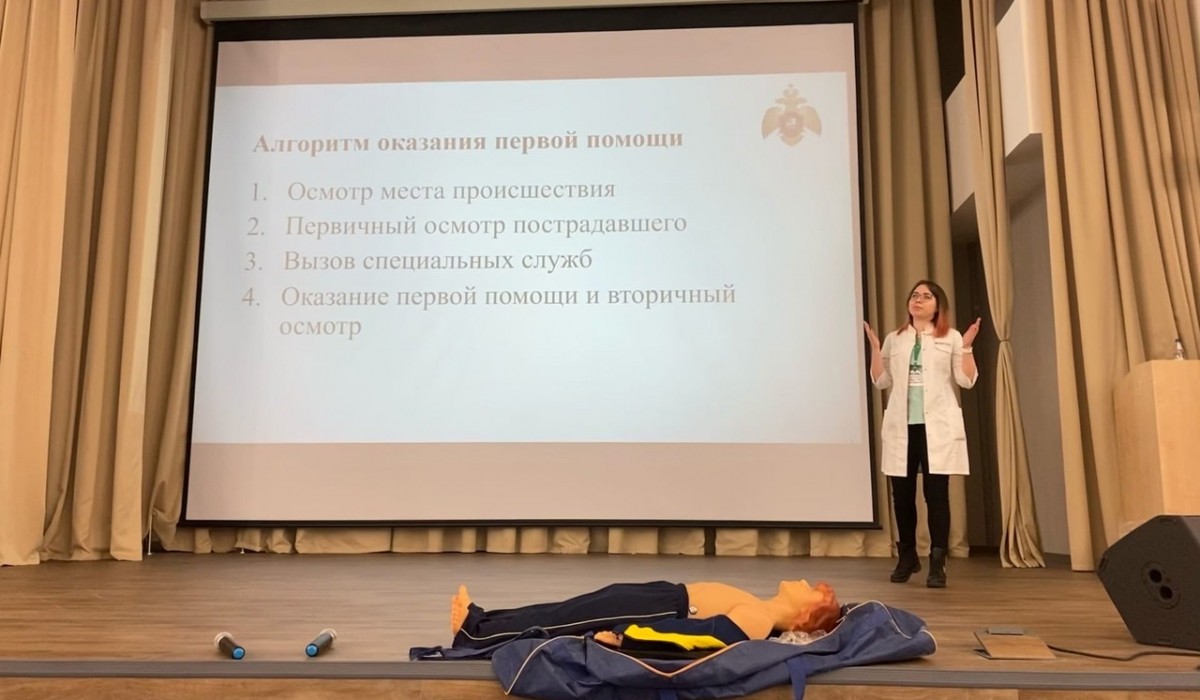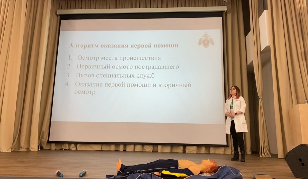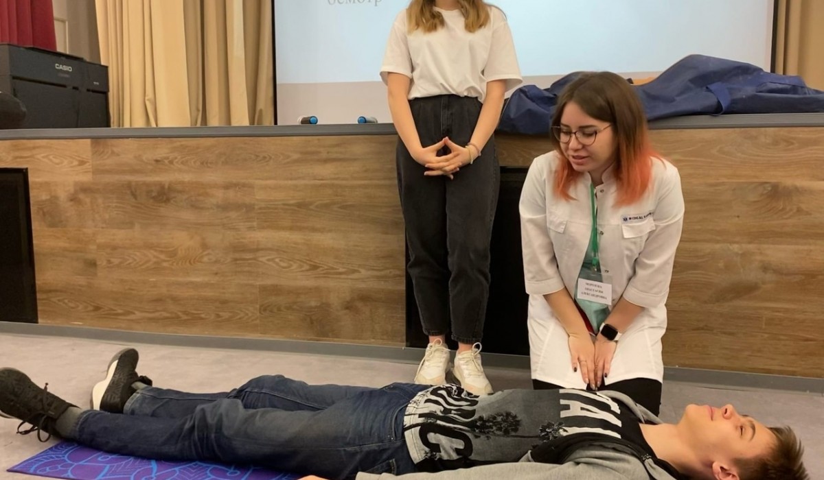 Ребята получают теоретические и практические знания по оказанию первой помощи людям, попавшим в беду. А такие ситуации могут случиться с каждым в большом городе. Как помочь человеку, получившему травму, потерявшему сознание, получившему ожоги, отравление и другие узнают школьники города. На занятии в школе №2120 Анастасия Морозова, студентка 1 курс лечебного факультета РГСУ рассказала и показала, как действовать при обнаружении человека у которого отсутствует сознание и пульс.