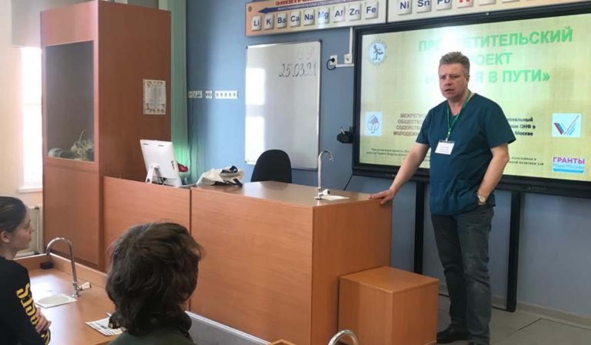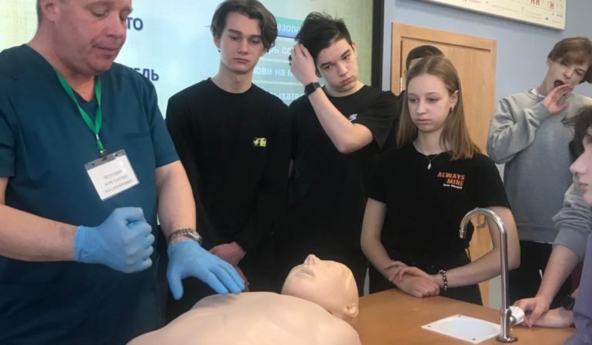 27 марта в школе №1514 профессиональный хирург, прошедший специальную подготовку по оказанию первой помощи людям, попавшим в беду в рамках социально-значимого проекта «Скорая в пути» Константин Владимирович Петрушин, провел занятие для девятиклассников по теме – оказание помощи при отсутствии пульса и сознания.
